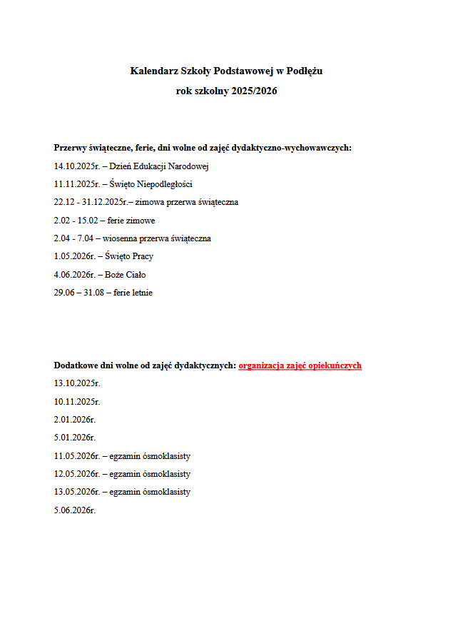 Kalendarz Szkolny
